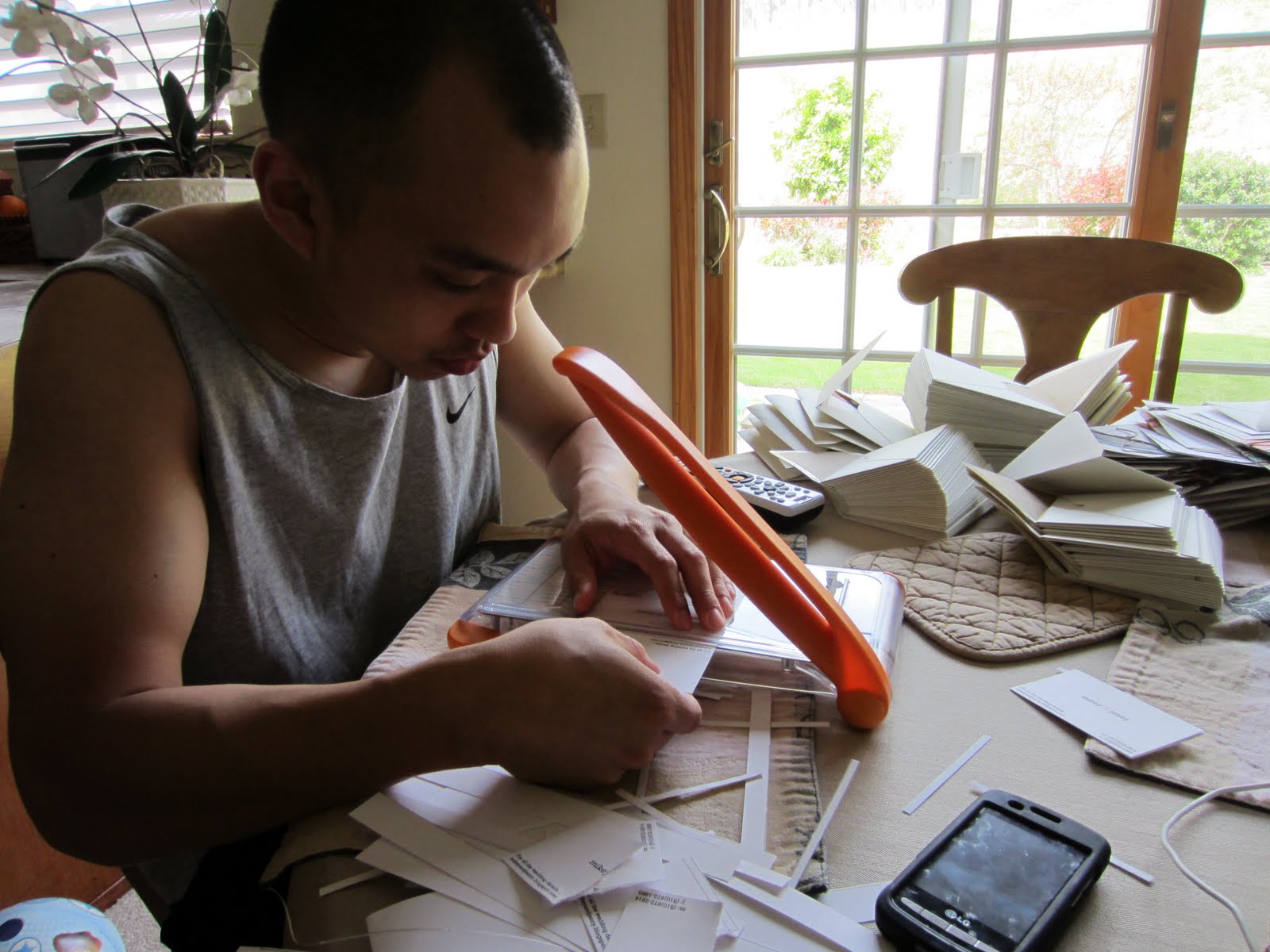 So what you may or may not know is that me and Mikey made the invitations. From design to printing, to cutting and gluing (yah that's how you spell it), we did it all.